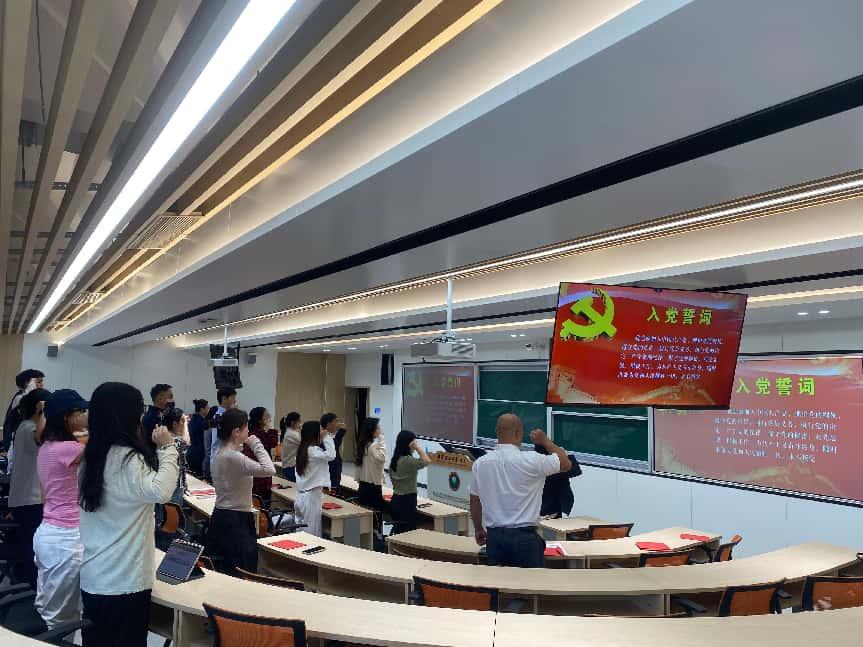 活动最后,全体党员在香山书院学生第二党支部书记黄萃同志的带领下,面向党旗,高举右拳,重温入党誓词。铿锵有力的誓言回荡在会场,进一步坚定了师生党员为党育人、为国育才的初心使命。